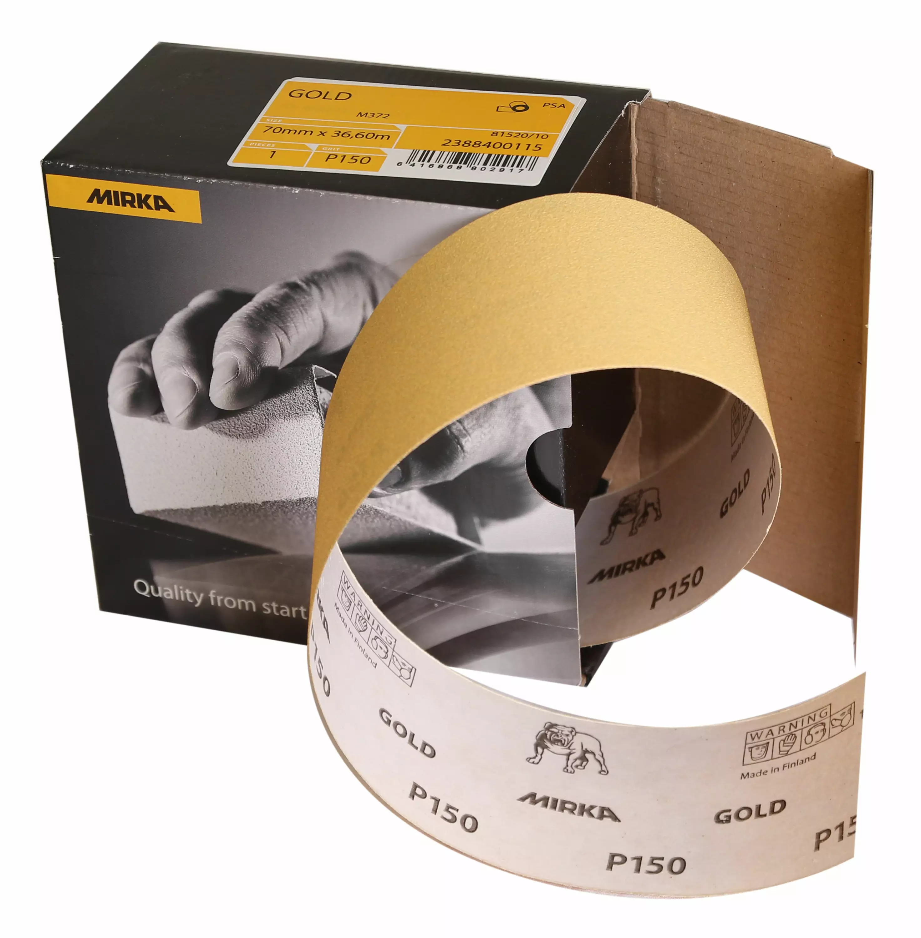 Mirkan klassikko, Gold, on uudistettu. Parannetussa versiossa on erityisen vahvat jyvät karkeuksissa P80-P180, minkä ansiosta tuote hioo erinomaisen tehokkaasti. Ihanteellinen sirottelu tekee tuotteesta nopeamman, eikä se tukkeudu niin helposti. Karkeuksissa P80-P180 on pohjana kalsiumstearaatti, joka tekee tuotteista erityisen sopivia vaativaan hiontaan. Hienommat sinkkistearaattipohjaiset karkeudet minimoivat tukkeutumista ja sopivat siksi pehmeille pinnoille. Parannettu pohjapaperi mahdollistaa jyvien ja sideaineen tasaisemman pinnan, ja lopputuloksena on täydellinen viimeistely. Mirkan Gold on nopeasti hiova tuote moneen erilaiseen käyttötarkoitukseen.