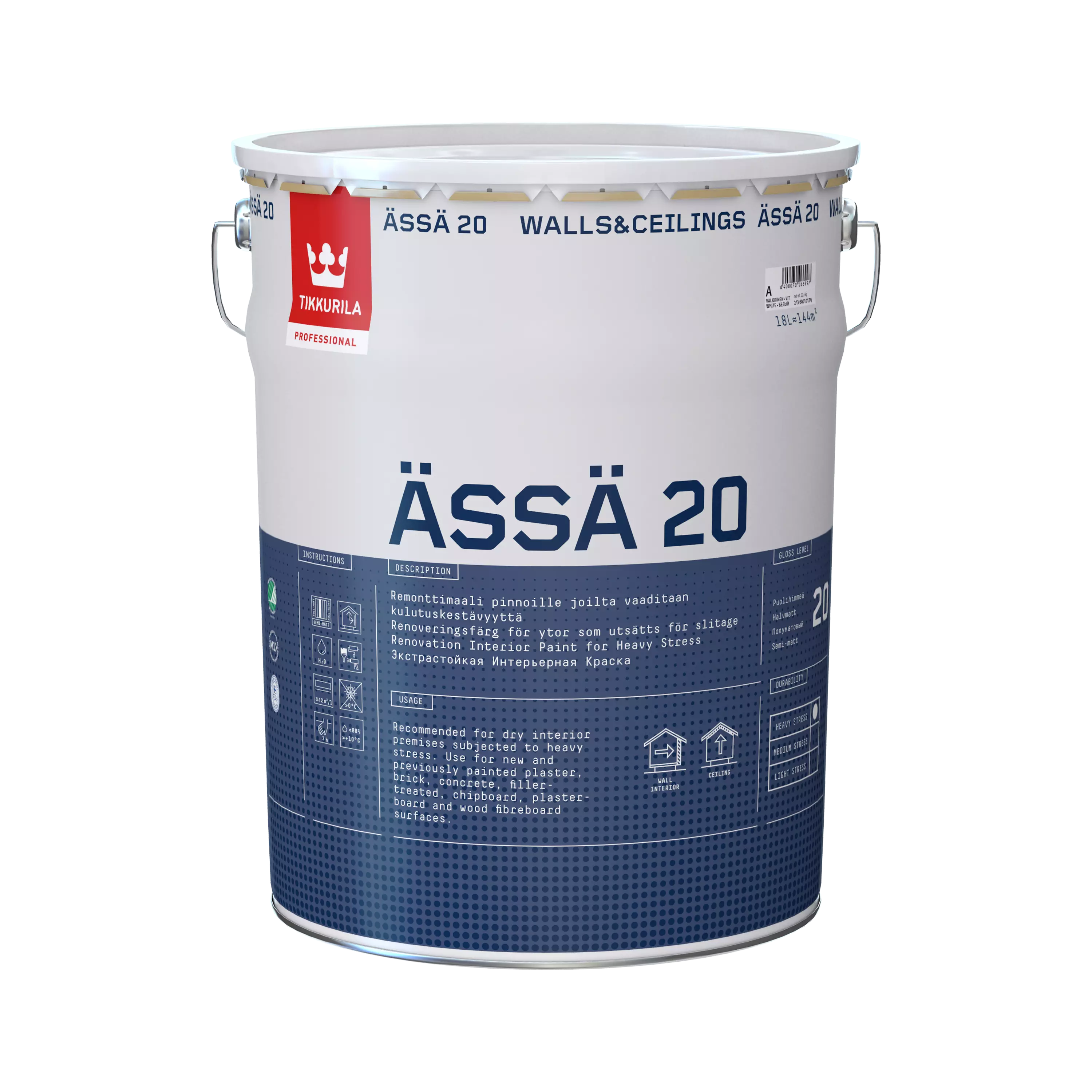 Vesiohenteinen, himmeä, ammattilaisille kehitetty akrylaattimaali seinä- ja kattopinnoille. Erityisesti pinnoille joilta vaaditaan kulutuskestävyyttä.