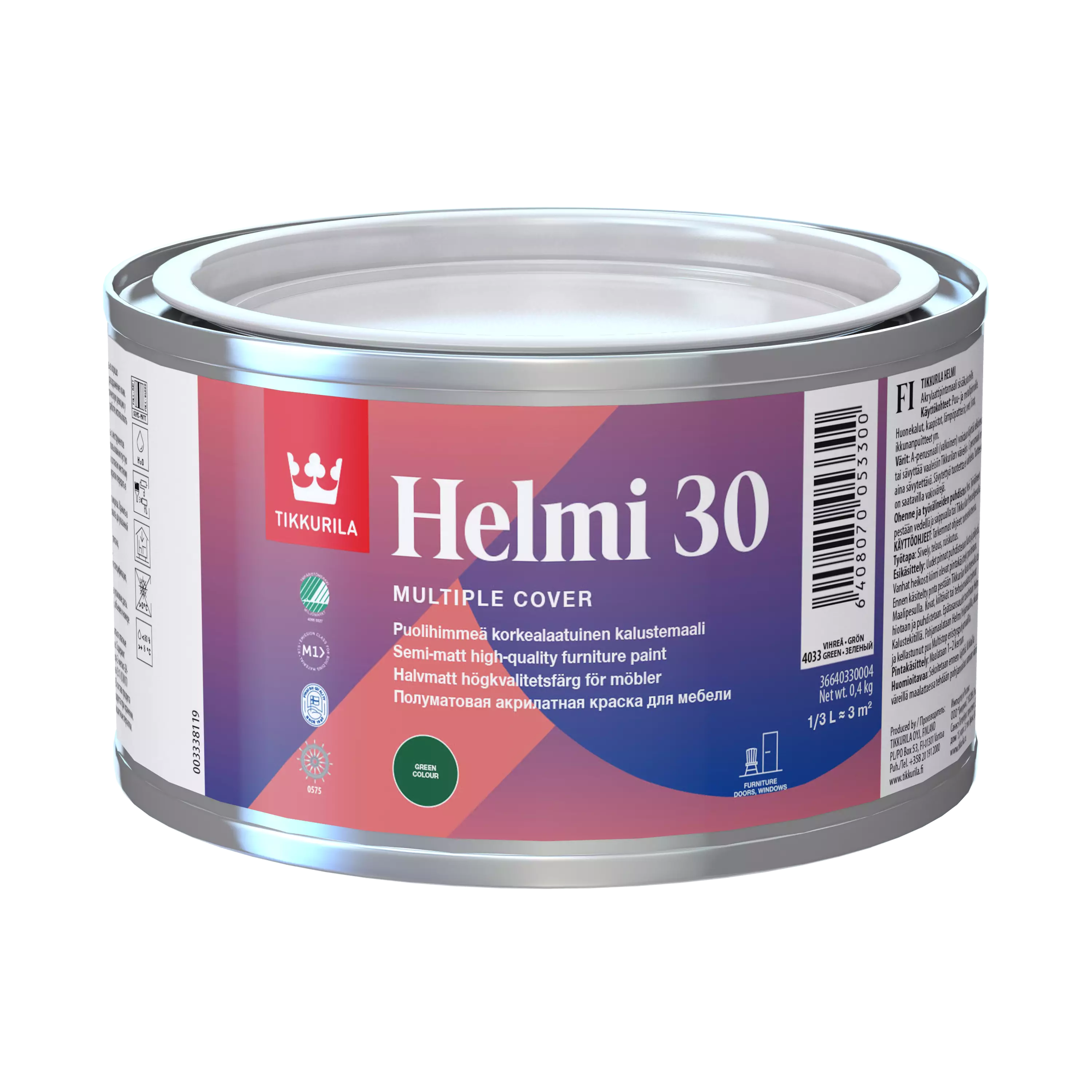 Helmi 30 Korkealaatuinen kalustemaali. OMINAISUUDET Sisämaalaukseen puu-, puukuitulevy-, lastulevy- ja metallipinnoille. Soveltuu sekä korjaus- että uudismaalaukseen, myös aikaisemmin alkydi- ja... Lue lisää