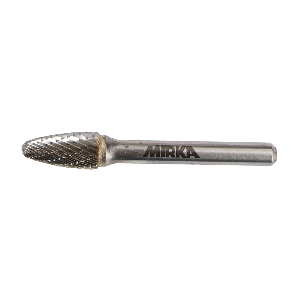 Kovametalliviila, muoto F eli puumuoto pyöristetyllä kärjellä. Karan halkaisija 6 mm.