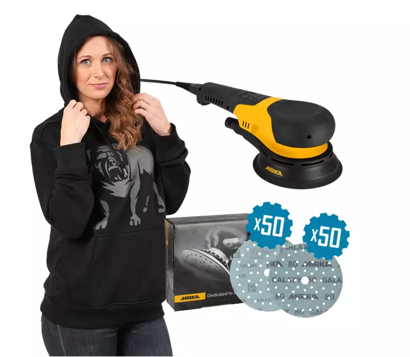 Osta DEROS RS 600 + saat kaupan päälle 2 pakettia GALAXY 150mm Multifit tarra hiomapyöröjä (sis.50kpl K80 + 50kpl K120) + Mirka hupparin 1kpl. Valitse alta sopiva koko.