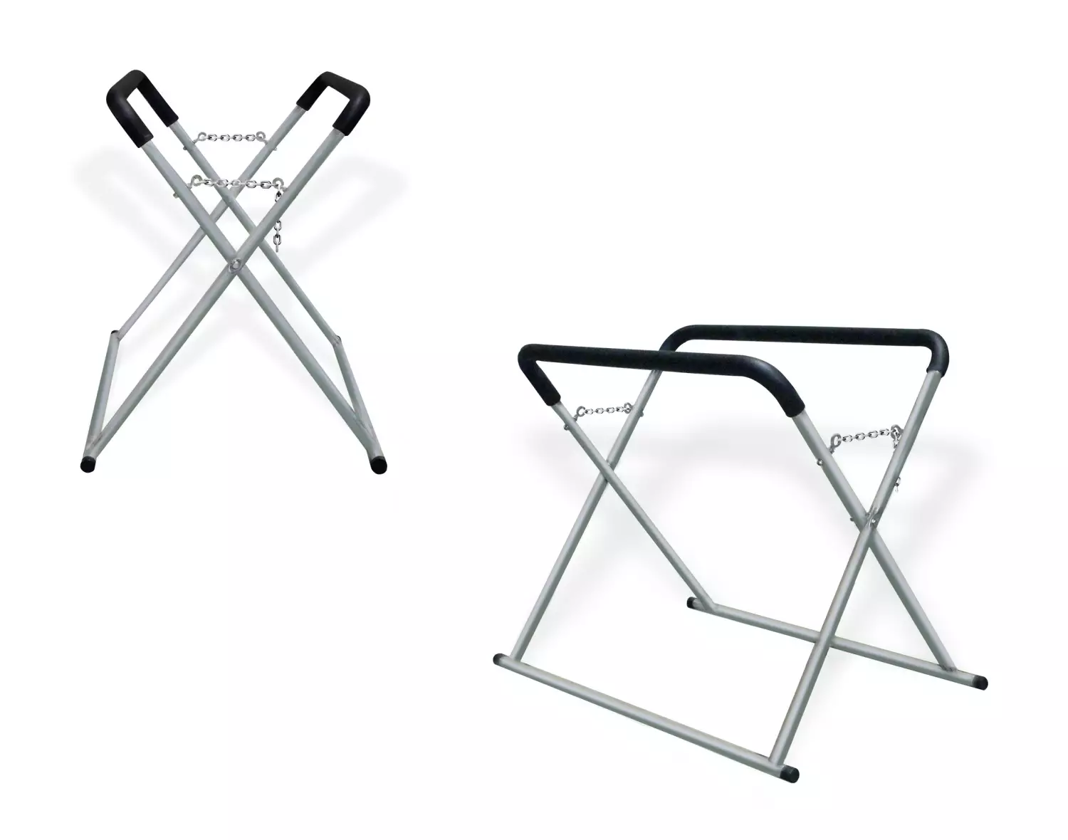 Korkeus/leveys säädettävissä ketjuilla. Rungon yläosa on päällystetty suojaavalla vaahtomuovilla. Taitettava. Kapasiteetti enintään 270 kg. Paino: 8,89 kg.