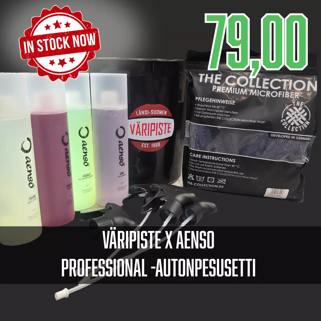 Pysäytä talvisuolan tuho ja palauta autosi näyttelykiilto! Yhteistyössä huippubrändi Aenson kanssa koottu BlackBucket sisältää kaiken, mitä vaativa autonpesijä tarvitsee: tehokkaan esipesun, raudanpoiston, hellävaraisen shampoon ja nanoteknologisen suojan. Säästä ja hanki ammattitason aineet yhdessä paketissa – hinta vain 79 €
