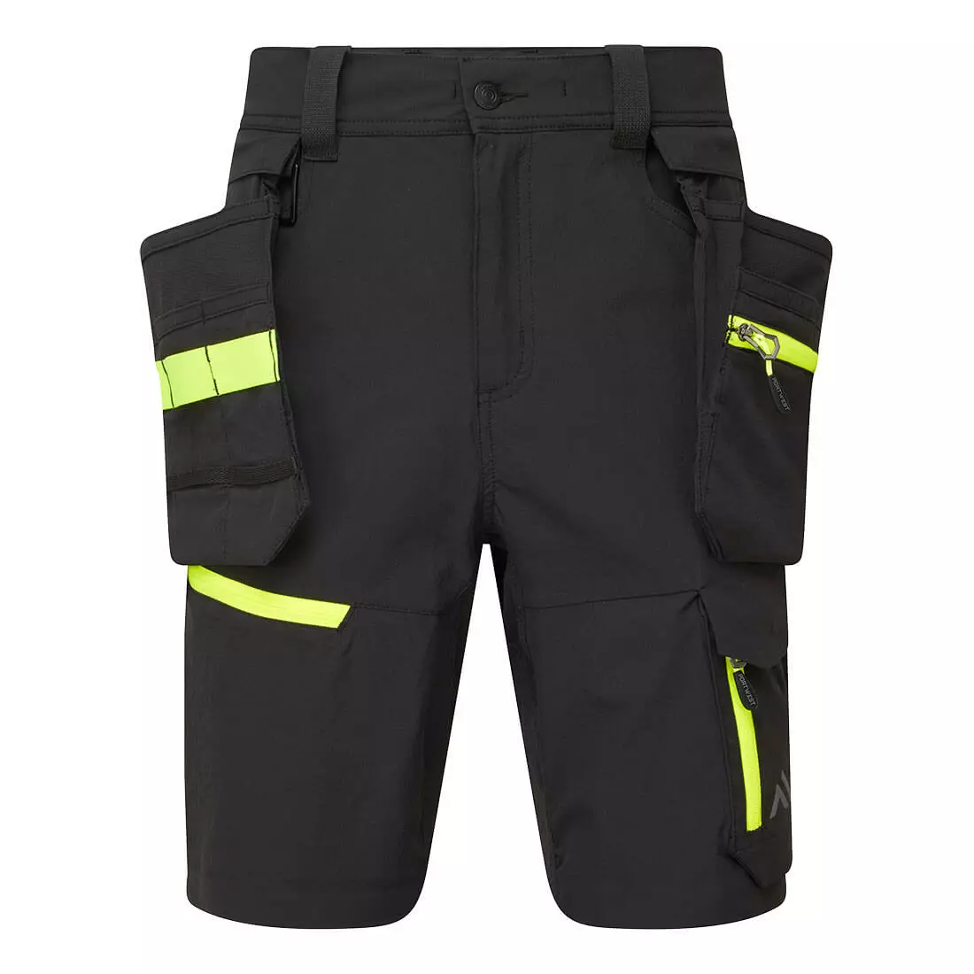 EV4 kevyet shortsit joissa on irrotettavat riipputaskut, käyttömukavuuden lisäämiseksi niissä käytetään laserleikattujen tuuletusaukkojen kohdennettua sijoittelua ja joustavaa kangasta, jotta työskentelysi olisi mahdollisimman mukavaa. Housuissa on takaa korotettu vyötärölinja, jossa on joustavat sivut, mikä takaa suojan ja mukavuuden kaikissa työasennoissa. Kolminkertaiset ompeleet takaavat maksimaalisen kestävyyden.
