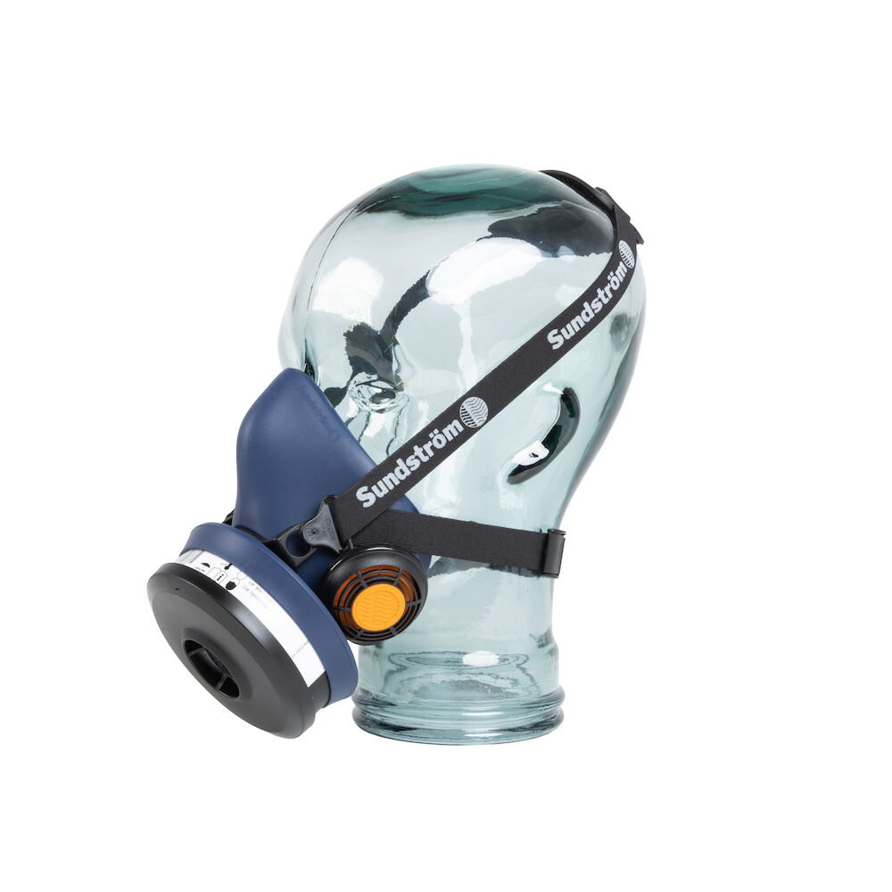 SR 100 -puolinaamaria valmistetaan silikonista kolmessa koossa; S/M, M/L ja L/XL. Naamarissa on kaksi uloshengitysventtiiliä, joten uloshengitysvastus on matala. Venttiilin osioidut suojukset suojaavat uloshengityskalvoa tehokkaasti pölyltä ja maalisumulta. Naamarin rungon materiaali ja väripigmentti ovat FDA- ja BGA-hyväksyttyjä elintarvikkeille, mikä minimoi kosketusallergiariskin. Maskin helposti säädettävät joustavat päänauhojen hihnat ovat muotoiltu V-muotoiseksi silmukaksi, ja niissä on suuri päälakilevy, joka varmistaa käyttömukavuuden ja hyvän istuvuuden. Naamareita käytetään joko suodatuslaitteena, kun siihen kiinnitetään Sundströmin suodatinvalikoimaan kuuluva suodatin, tai hengityslaitteena, kun siihen kiinnitetään jatkuvavirtauksinen SR 307 -paineilmalaite, joka on kytketty paineilmalähteeseen. Mukana on pidike esisuodattimelle. Suosittelemme säilyttämään SR 230 -laatikossa tai vaihtoehtoisesti SR 339 -säilytyslaatikossa.